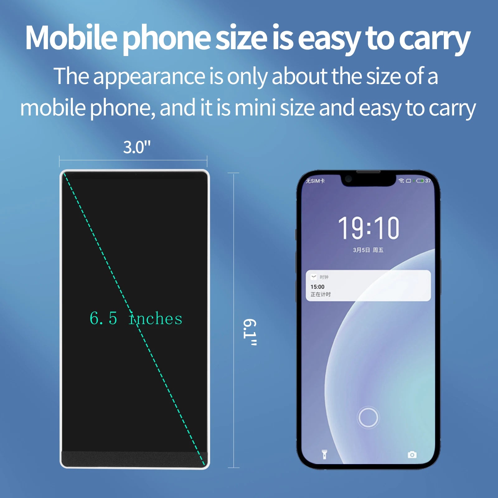 Screen Size(inch): 6.5inch(width 3.03 inch,height 6.10 inch,thickness 0.2 inch)